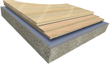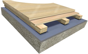 Este sistema de piso flotante resistente presenta una almohadilla Action E-Cush de 3/8" adherida a nuestras traviesas laminadas que no se tuercen ni se arquean con la resistencia del piso de arce Action para crear un sistema acolchado de alto perfil. Este sistema de piso flotante ofrece absorción de impactos junto con un excelente flujo de aire.