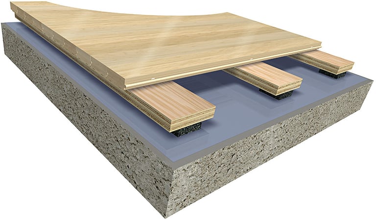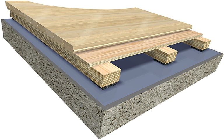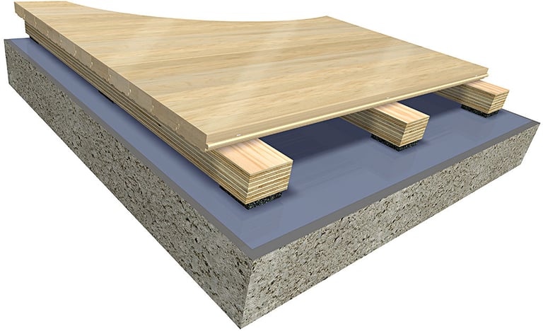 El sistema flotante Action ProAir WBS utiliza durmientes de cuerpo ancho combinados con nuestra almohadilla Action E-Cush de 5/8″ para lograr estabilidad y resistencia con una excelente respuesta de la pelota. Esto da como resultado un sistema de piso con una jugabilidad y un rendimiento excepcionales.